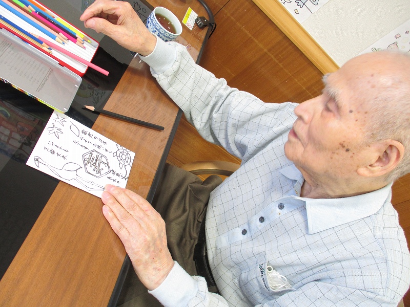 9月14日に絵手紙作りをしました。みなさん好きな絵柄を選んできれいに色を塗て下さりました。