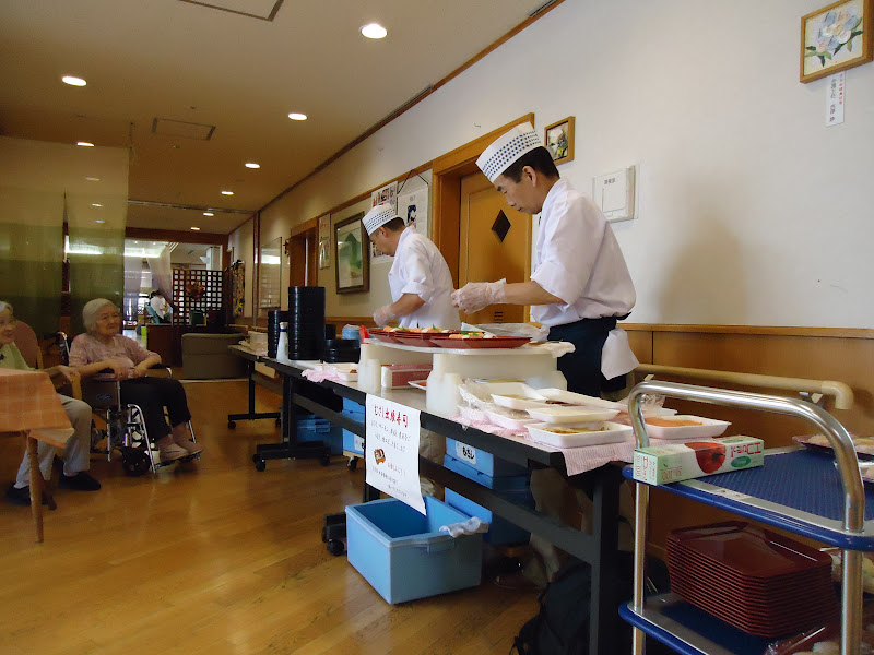 2012年8月22日|出張むさし寿司 投稿者:admin 投稿公開日:2012年8月22日 投稿カテゴリー:京都市柊野特別養護老人ホーム / 柊野福祉会 京都市柊野特別養護老人ホーム から 記事が届いています 8月20日 むさし寿司さん にお越しいただきました 食欲の減退する時期だからこそ、 皆さんがお好きなお寿司で 食欲を増進して頂き 暑さを乗り切ってもらいたいです 職人さんのにぎりをじぃーっとみつめておられる方、 お寿司の思い出話をされる方、 昔寿司職人だった方は握る格好をして下さったり・・・・ と様々でした 「やっぱり日本人は、 お寿司大好きですね!」 美人管理栄養士からの投稿でした タグ: 京都市柊野特別養護老人ホーム その他の記事を読む 前の投稿2012年8月19日|かき氷(西フロア)次の投稿2012年8月23日|感染症研修 おすすめ 2013年4月25日|―就職フェア出展のお知らせ― 2013年4月25日 2014年12月13日|カフェでティータイム 2014年12月13日 2015年1月5日|おせち料理 2015年1月5日