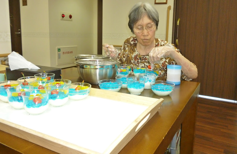 2012年7月9日|七夕ゼリー作り 投稿者:admin 投稿公開日:2012年7月9日 投稿カテゴリー:柊野福祉会 アーバンヴィラ上桂 から 記事が届いています 七夕の日 ご入居者の皆さんと七夕ゼリーを作り、茶話会でいただきました まずは ヨーグルトゼリーを作ります 冷蔵庫で冷やして固めたら サイダーとシロップで作った 「夜空ゼリー」を乗せて きらきら七夕ゼリーの出来上がり 皆様の健康を・・・ タグ: アーバンヴィラ上桂 その他の記事を読む 前の投稿2012年7月6日|ベゴニア次の投稿2012年7月13日|マッサージボランティアさん おすすめ 2012年8月11日|夏祭りINガーデンハウス西賀茂 2012年8月11日 2012年3月4日|いけばな展 2012年3月4日 2018年9月17日|バナナケーキ 2018年9月16日